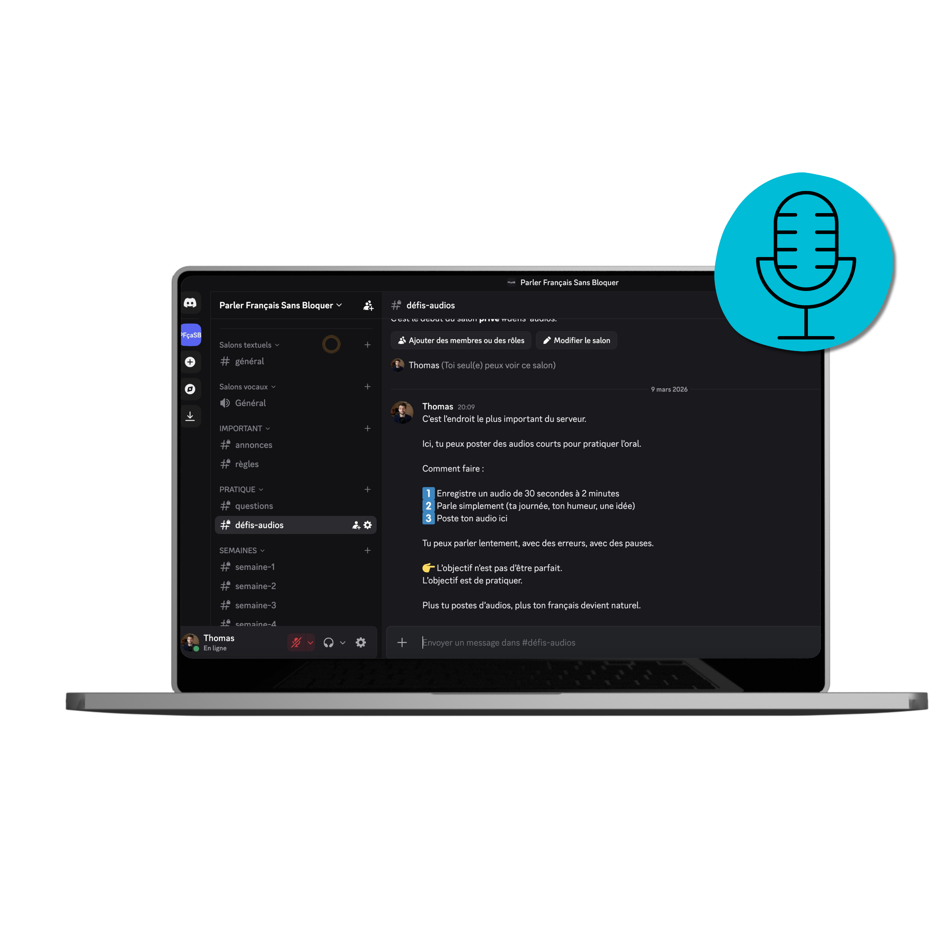 La seule condition : avoir réellement testé la formation, en postant au moins un défi audio dans le groupe Discord.